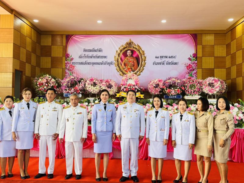 และนายบัญชา จันทะเสน ปลัดองค์การบริหารส่วนตำบลโคกใหญ่ หัวหน้าสำนักปลัด ผู้อำนวยการกอง ข้าราชการ พนักงานจ้างในสังกัด เข้าร่วม พิธีวางพวงมาลาถวายราชสักการะพระบรมฉายาลักษณ์พระบาทสมเด็จพระจุลจอมเกล้าเจ้าอยู่หัว ณ สถานที่ หอประชุมอำเภอท่าลี่