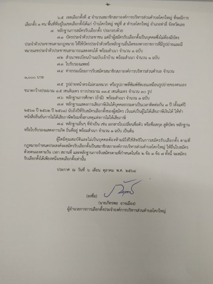 ประกาศให้มีการเลือกตั้งสมาชิกสภาองค์การบริหารส่วนตำบลโคกใหญ่